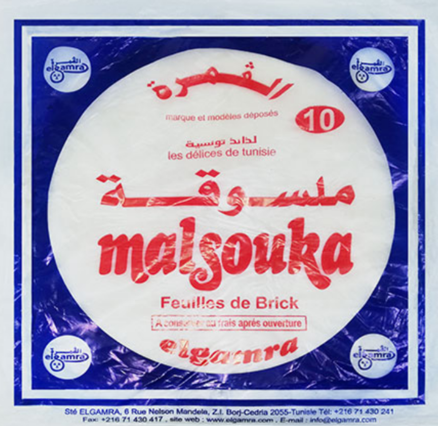 Les feuilles de brik Malsouka El Gamra sont des feuilles fines et souples, spécialement conçues pour les recettes tunisiennes traditionnelles comme les bricks au thon, bricks aux œufs, ou samoussas.