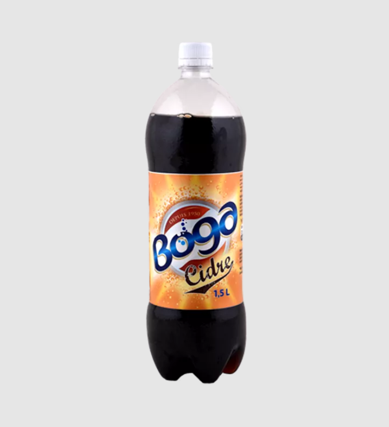 Boisson gazeuse Boga Cidre 1.5L, rafraîchissante et pétillante, avec sa saveur unique inspirée du cidre, idéale pour accompagner vos repas et moments de détente.