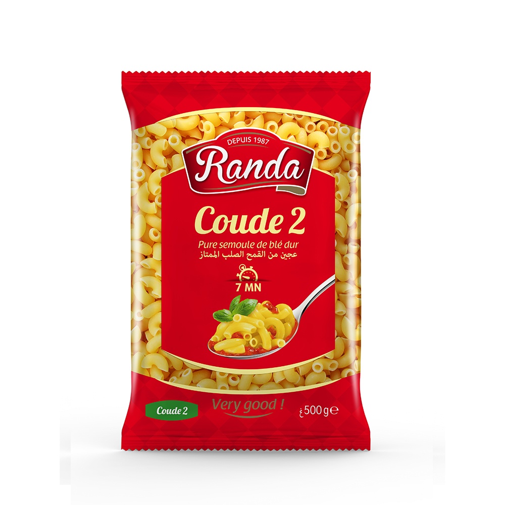 Découvrez les Coude 2 Randa, des pâtes tunisiennes en forme de coudes, fabriquées à partir de semoule de blé dur de qualité supérieure. Leur forme unique les rend parfaites pour vos soupes, gratins, plats mijotés ou recettes traditionnelles familiales, tout en assurant une cuisson uniforme et une excellente tenue. Conditionnées en sachet de 500 g, elles vous permettent de préparer facilement des repas savoureux et authentiques. Commandez en ligne sur epicerie-shop.ca et profitez de la qualité tunisienne directement chez vous !