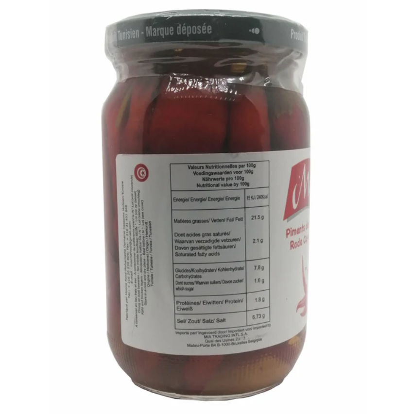 Ces piments sont conservés dans l’eau pour préserver leur croquant, leur saveur et leur piquant naturel. Parfaits pour relever vos plats tunisiens comme le lablabi, le couscous, vos sauces, grillades ou marinades, ils apportent un goût authentique et intense directement de la tradition culinaire tunisienne.