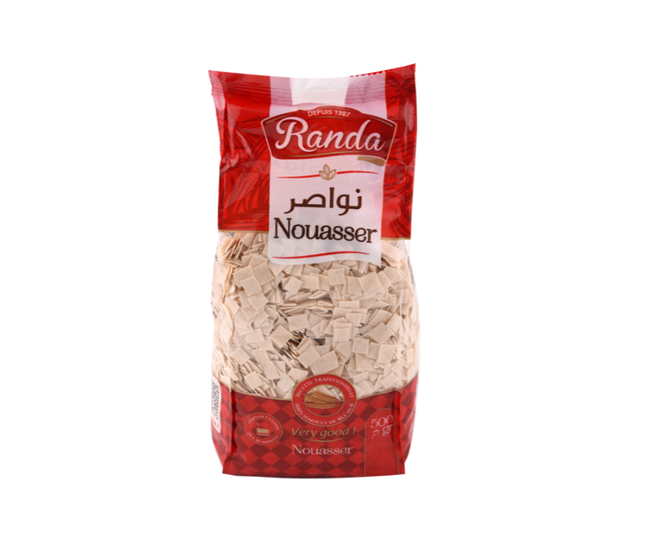 Découvrez les Nouasser Randa, des pâtes traditionnelles tunisiennes fabriquées à partir de semoule de blé dur de qualité supérieure. Parfaites pour vos chorbas, potages, plats mijotés ou recettes familiales, elles cuisent rapidement tout en gardant une texture tendre et agréable. Conditionnées en sachet de 500 g, ces pâtes apportent l’authenticité de la cuisine tunisienne à vos repas quotidiens et festifs. Commandez facilement sur epicerie-shop.ca et profitez de la saveur traditionnelle tunisienne directement chez vous !